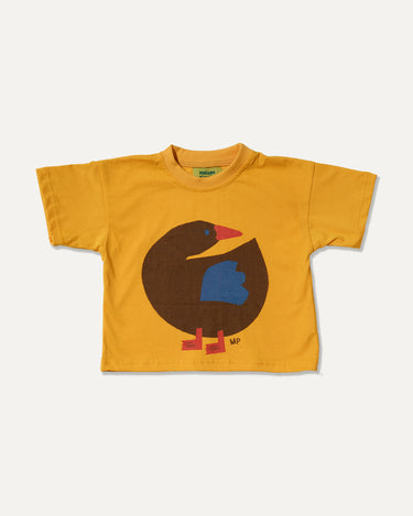 This golden yellow tee features a bold, retro-style duck with a bright beak and cobalt wing—just the kind of bird you’d want waddling by your side. Made from soft cotton in our signature relaxed, boxy fit that’s perfect for park days, snack breaks, and puddle-hopping alike.