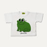 A white t-shirt with a mischievous, frog print. Cut from soft cotton in a relaxed, boxy fit made for play, puddles, and everything in between.